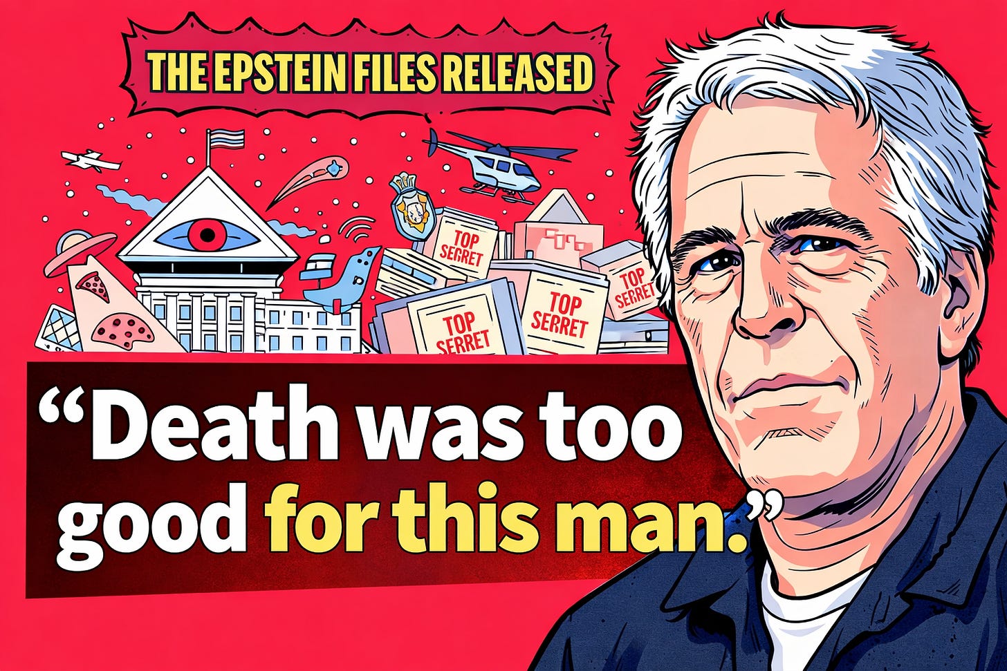 Six million pages of federal documentation. Bipartisan legislation mandating their release. An active DOJ investigation. A bank account named after the god. A temple built to the godâs specifications. A science of child destruction documented in clinical language by people who knew exactly what they were doing.