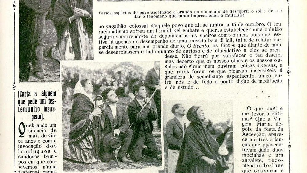 The crowd wasnât uniformly religious. O SĂ©culo, one of Portugalâs major secular newspapers, sent their editor Avelino de Almeida, whoâd previously written mocking articles about the apparitions. He came to document mass delusion. Government officials attended to record the embarrassing display of superstition. Scientists showed up to study crowd psychology.