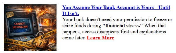 Gold is the only sponsor you will ever see in this newsletter. Not because nobody else is buying. But because gold and silver are the only things I will personally put my name behind.