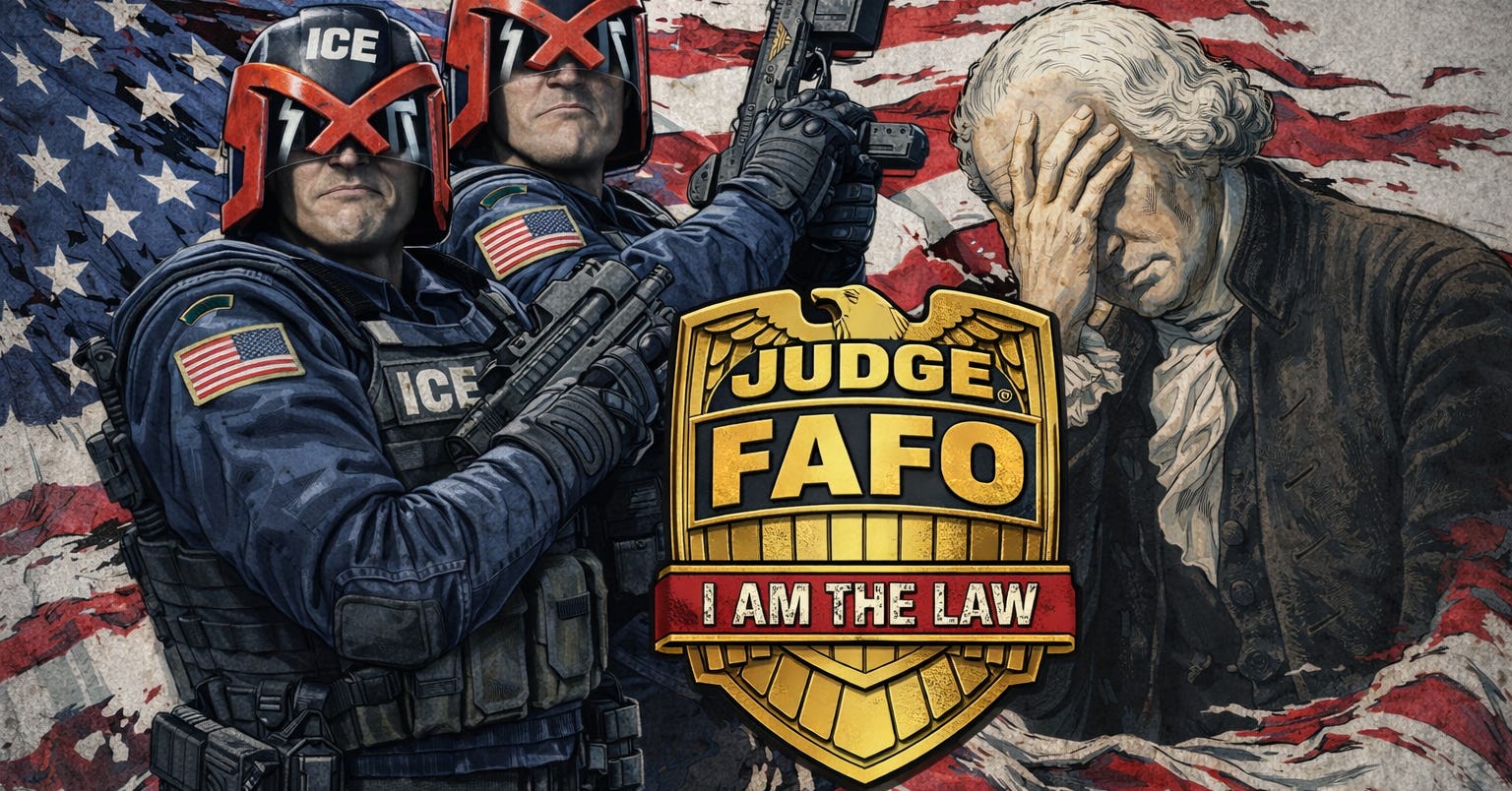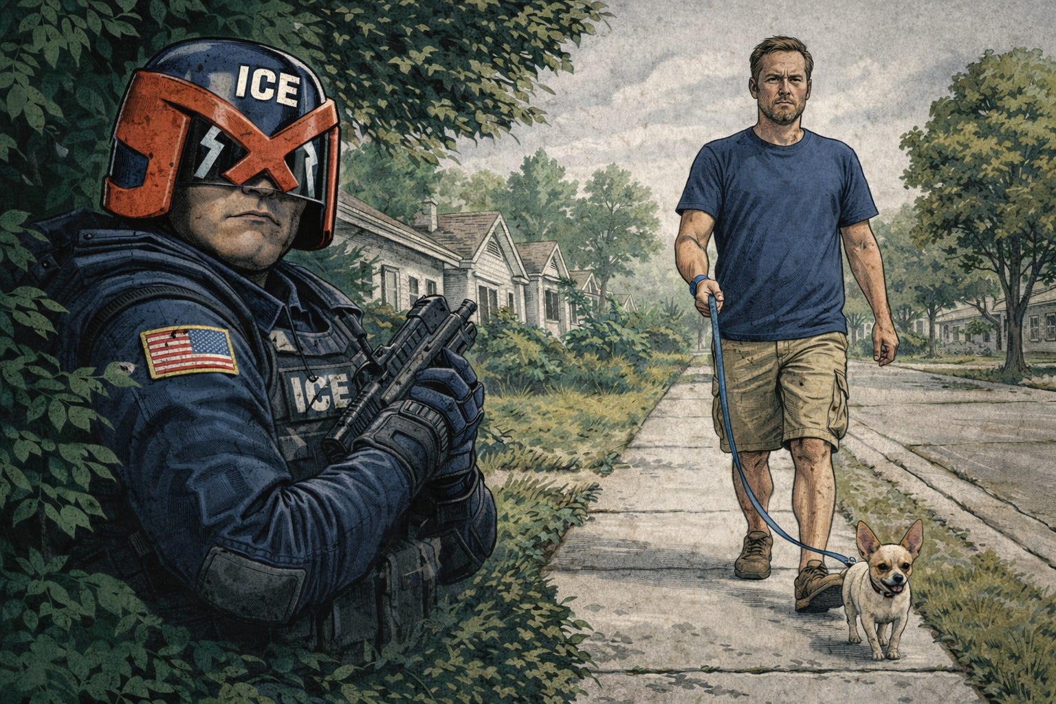 DISCLAIMER: The preceding section is purely satirical fiction. It is not intended to mock any individual or make light of real tragedy. It is intended to highlight a disturbing reality: what I just described as dystopian comic book fantasy is not far removed from what is actually happening right now in the United States of America. When I was a kid, I read Judge Dredd comics and thought they were wild exaggerations of authoritarian police states. I never imagined I would live to see my own country start to resemble them. The following is not fiction.