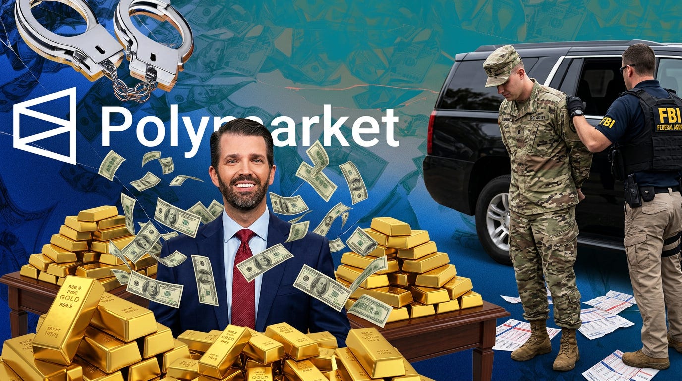 Donald Trump Jr. is an investor in Polymarket. The exact platform where Van Dyke allegedly committed his five federal crimes. He also sits on Polymarket’s advisory board and is a paid strategic adviser to Kalshi, Polymarket’s main competitor, which means the president’s oldest son is collecting checks from BOTH sides of the prediction market industry currently under congressional scrutiny for being a machine through which people with access to government information can convert classified knowledge directly into personal wealth. He is not a passive investor. He is on the board. He is cashing checks. He showed up to a UFC fight last week with his girlfriend while Van Dyke was being processed in federal custody, which is not illegal, but is the kind of detail that should make your vision go slightly red.