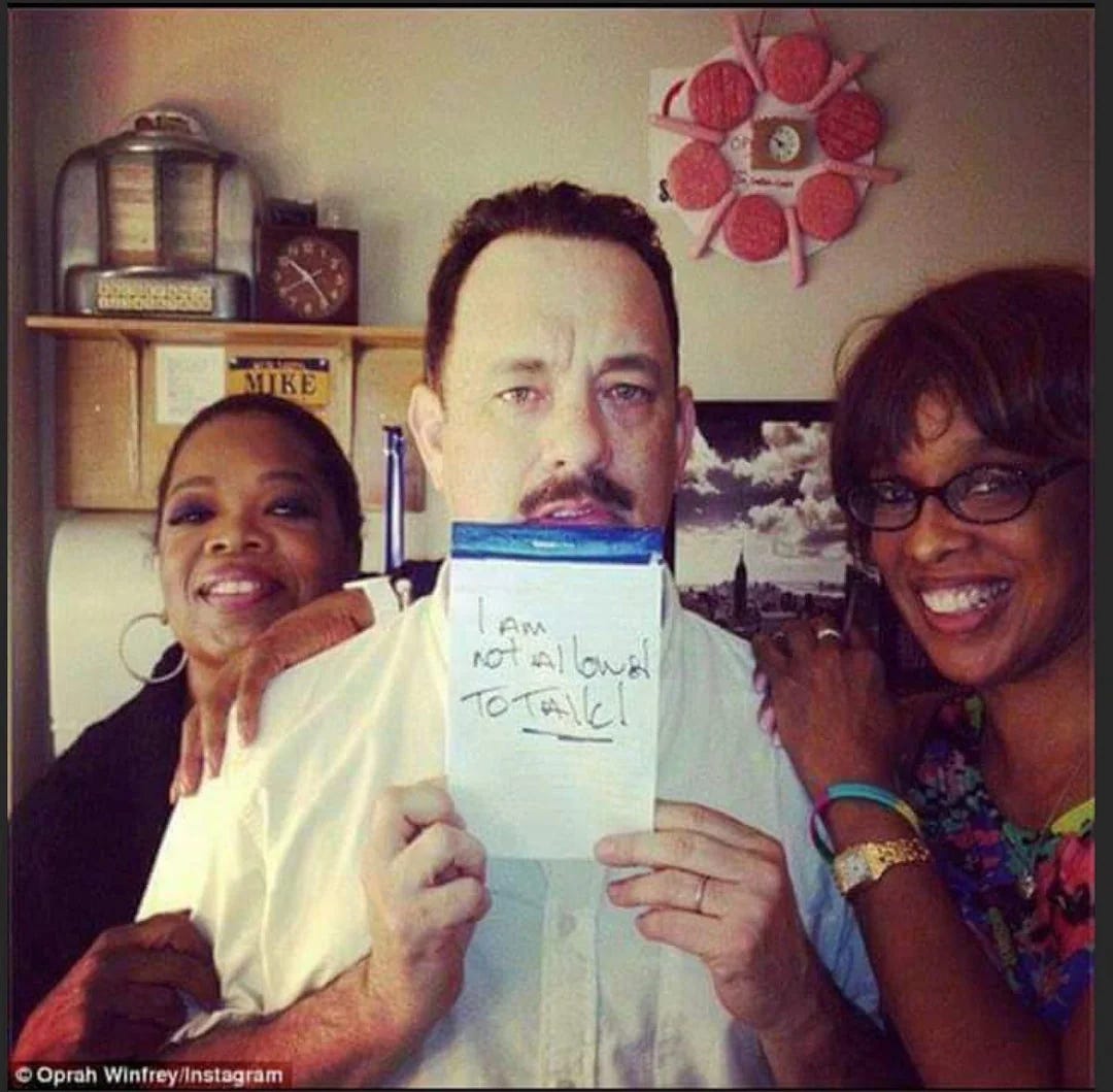And it gets worse. Oprah is close with Tom Hanks. Very close. Actor Isaac Kappy went public accusing Hanks of involvement in a pedophile satanic cult. Kappy died of “suicide” shortly after. There is a photograph circulating online of Oprah and Hanks posing together with hamburgers and hot dogs stuck to the wall around a clock. Occult symbolism researchers have identified the hot dogs as a reference to the consumption of children’s penises and the hamburgers as ground flesh of children, consumed as part of rituals connected to Kronos (Saturn, Satan, Father Time), the devourer, the god who ate his own children. The clock represents Father Time himself. The entire image, according to these researchers, is a celebration of cannibalistic ritual designed to unlock occult power. They are posing with it. Smiling.