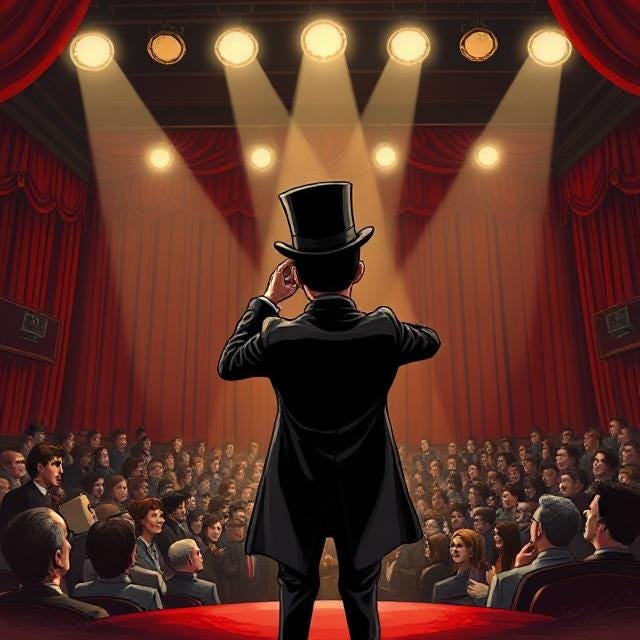 "For my next trick, I'm going to make the biggest scandal in American history completely disappear before your very eyes. Watch closely—but not too closely—as I perform the ancient art of misdirection on an entire nation."