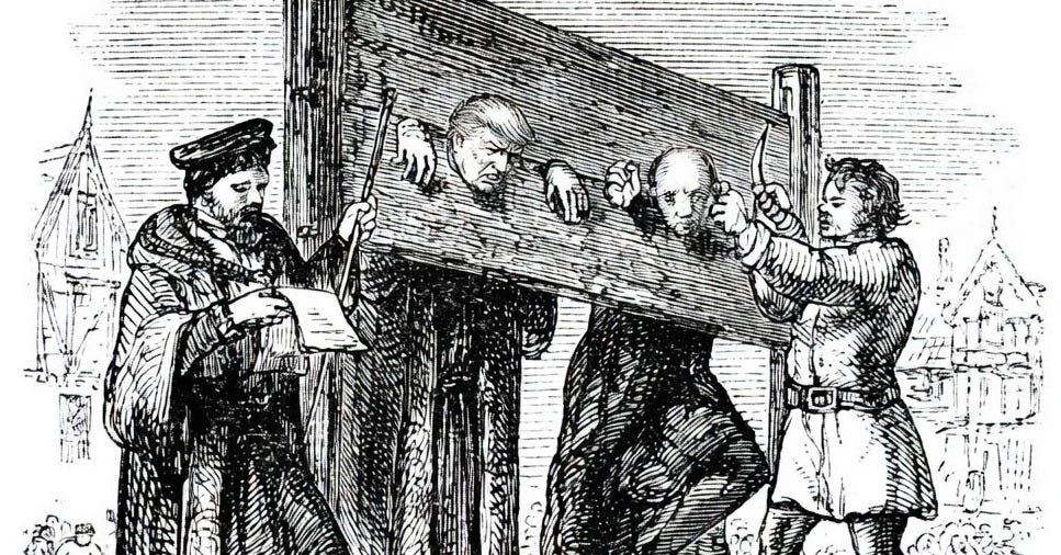 You broke the community’s trust, you stood in the town square in a wooden frame that locked your head and hands in place, and every person who walked past you knew exactly what you had done. They could say it to your face. They could throw things. The baker whose bread you stole, the woman you harassed, the neighbor you swindled, everyone got to look you in the eyes and name it out loud. And then you went home. No prison sentence costing taxpayers $250,000 per year. No removal from the sight of the people you wronged. You stayed in the community. You had to live with what you did visible on every face that looked at you.